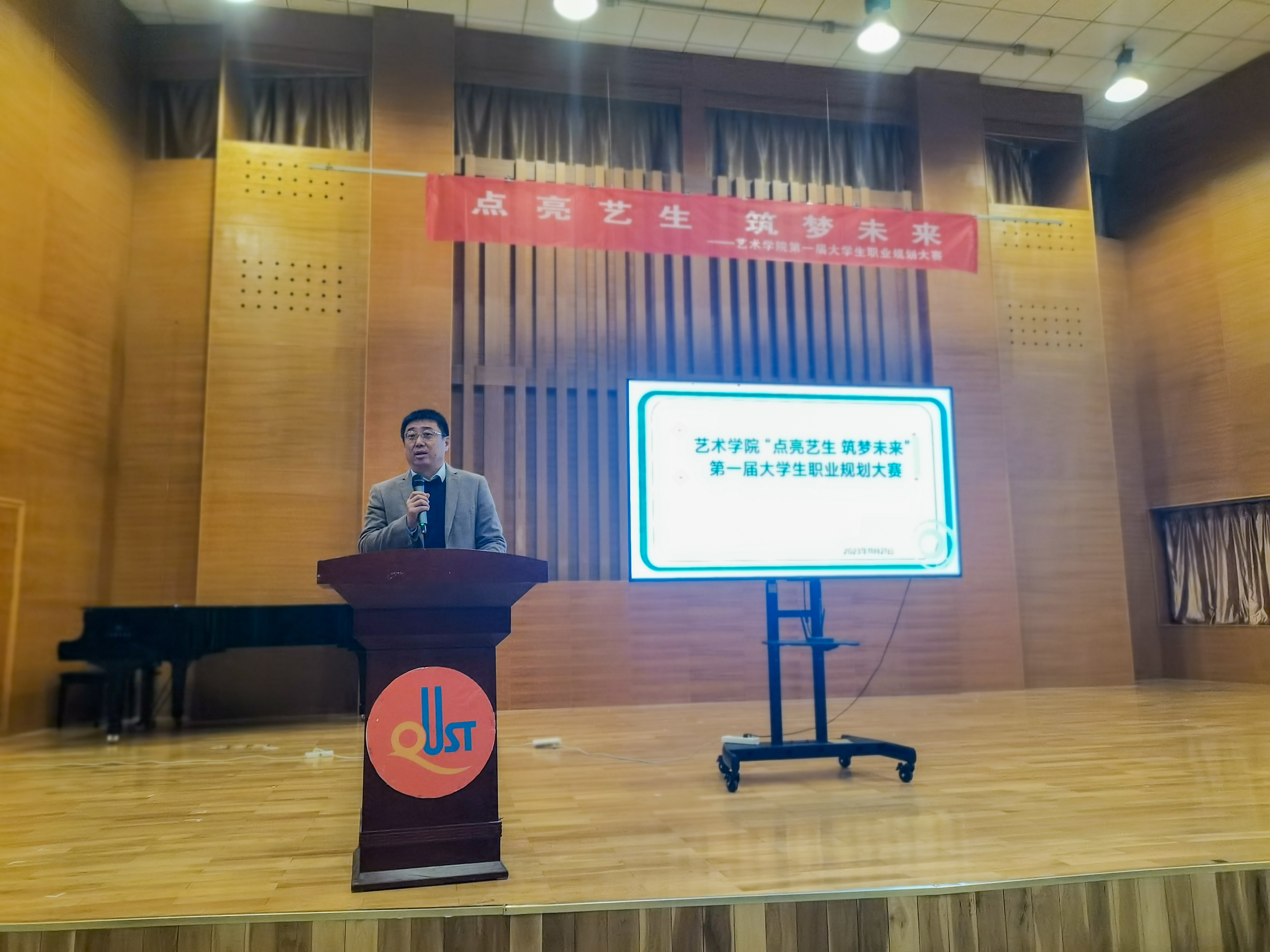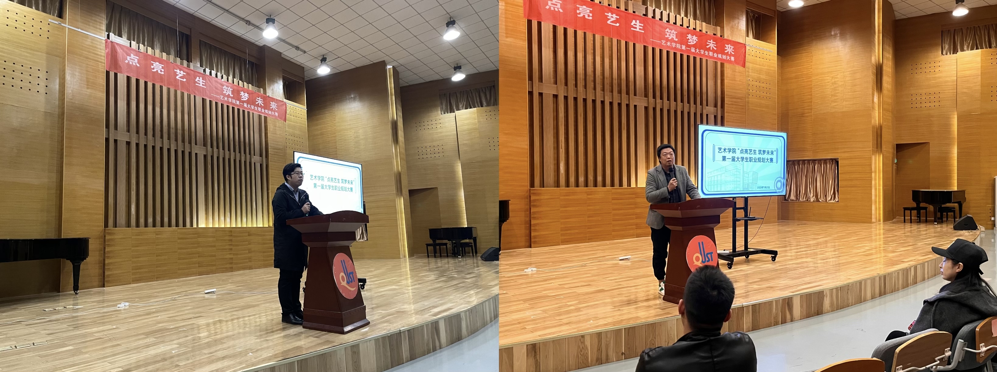 “点亮艺生筑梦未来”第一届大学生职业规划大赛决赛在音乐厅举办。青岛科技大学学生处副处长张超,青岛白魔方TEAM总经理、前百度(山东地区)策划总监、高校创新创业导师王秉全,青岛白魔方TEAM项目经理、校企合作事业部区域经理张杰,艳照门