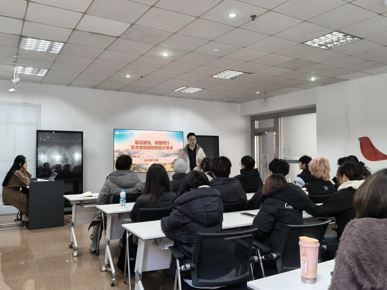 在学校“一站式”社区学业发展中心举办“励志逐光,研路同行”保研经验分享会。分享会由学院辅导员盛士峰主持,邀请推免学生代表进行经验分享,吸引了40余名同学参与。