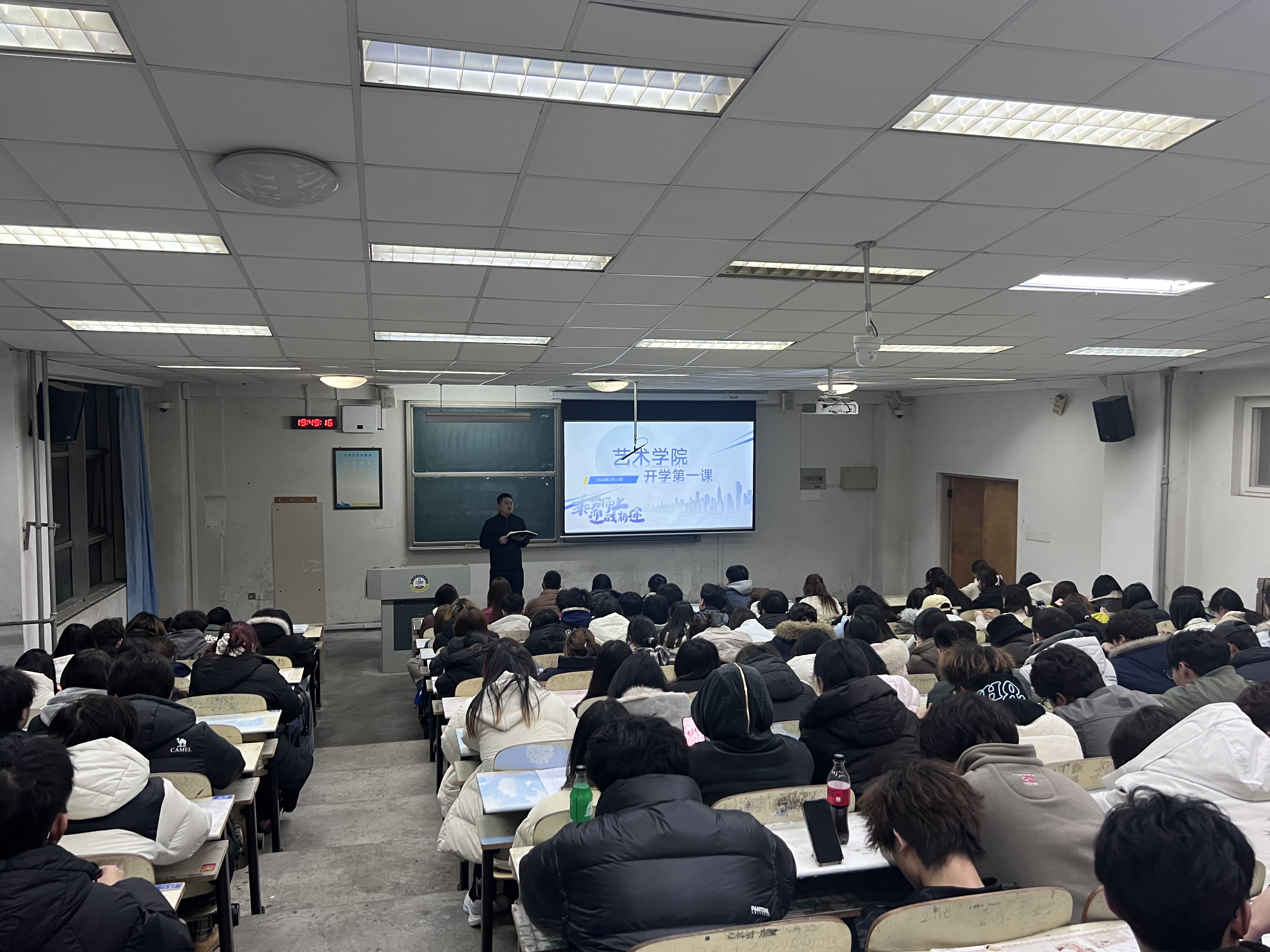 会上,学院团委书记兼学工办主任颜枫围绕理想信念,勉励学生将个人艺术追求与时代发展、国家需求相结合,守正创新锤炼专业本领,涵养家国情怀与艺术初心,努力成长为兼具专业素养与人文情怀的新时代艺术人才。随后,颜枫从多维度为学生答疑解惑、明确要求。专业规划方面,解读学院人才培养方案、课程体系与学科竞赛安排,指导学生科学制定学业规划,鼓励积极参与实践创作与科研创新;校园管理方面,讲解校规校纪、考勤考核、评优评先等制度,明确宿舍文明、学风建设的具体要求;安全育人方面,聚焦消防安全、电信网络诈骗防范、网络安全等重点领域,通过真实案例剖析安全风险,普及防范知识与应急处置方法,切实提升学生安全防范意识和自我保护能力。互动交流环节,学生们围绕专业学习、校园生活、发展规划等问题积极提问,现场氛围热烈且融洽。