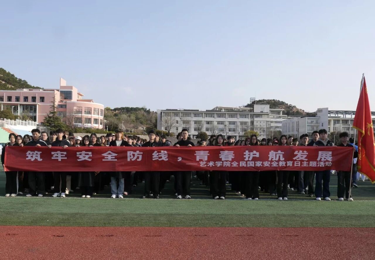 、数理学院于崂山校区南苑操场联合举行“数理明志,艺燃芳华”国家安全教育日主题升旗仪式,青年学生代表肃立严谨、队列整齐,共同参与本次活动。