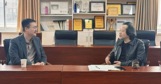 与青岛一跃具身机器人有限公司(以下简称“一跃具身机器人”)在校内召开产学研合作交流会。双方就具身智能技术在艺术疗愈、虚拟现实交互及工业设计领域的应用转化进行深入研讨,并就共建跨学科科研平台达成初步共识。